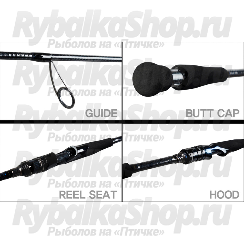 - Верхняя и нижняя часть (Butt) часть рукоятки изготовлена из черного сверхпрочного материала EVA.