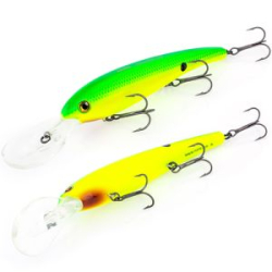 Akara Deep Finder 125F - глубоководный воблер для ловли троллингом. Усиленный мощный корпус приманки хорошо выдерживает натиск зубов матерых хищников обитающих на больших глубинах. Лопасть воблера усилена металлическим шариком, что позволяет воблеру буквально отскакивать от камней и прочих подводных препятствий. Плавающий. Акустический. Заглубление при троллинге от 8 ,0 до 12,0 м.