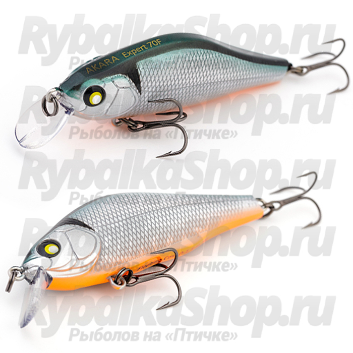 Akara Expert 70F - воблер класса шэд (Shad). Имеет довольно высокое тело, сплюснутое с боков и небольшую лопасть. Обладает активной собственной игрой на равномерной проводке и отлично подходит для рывковой (твичинговой) проводки. Лучше всего проявляет свои уловистые свойства на мелководных реках и озерах, неглубоких участках водохранилищ и крупных рек. Основные трофеи это щука и окунь, но и другие хищные и полухищные рыбы не смогут устоять пред соблазнительной игрой приманки. Воблер Akara Expert 70F оснащен магнитной системой дальнего заброса (Magnetic Cast Sistem MCS). Крючки из высокоуглеродистой стали, тип плавучести – плавающий (Floating). Заглубление от 0 до 1,5м.