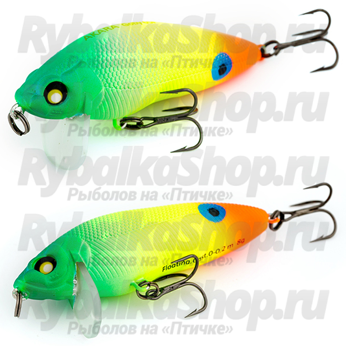 Воблер Akara Goby 65F – подповерхностный воблер с ярко выраженной размашистой игрой. Благодаря минимальному заглублению (0 – 0,2м) позволяет облавливать заросшие и закоряженные участки водоемов, мелководные заливы и перекаты. За счет компактной формы имеет отличные полетные качества. Незаменим при ловле щуки и окуня в жаркие летние дни и при малой активности рыбы. Воблер Akara Goby 65F плавающий (Floating) , сильно шумящий. Оснащен двумя тройниками из высокоуглеродистой стали. Заглубление при троллинге 0 до 0,2 м.