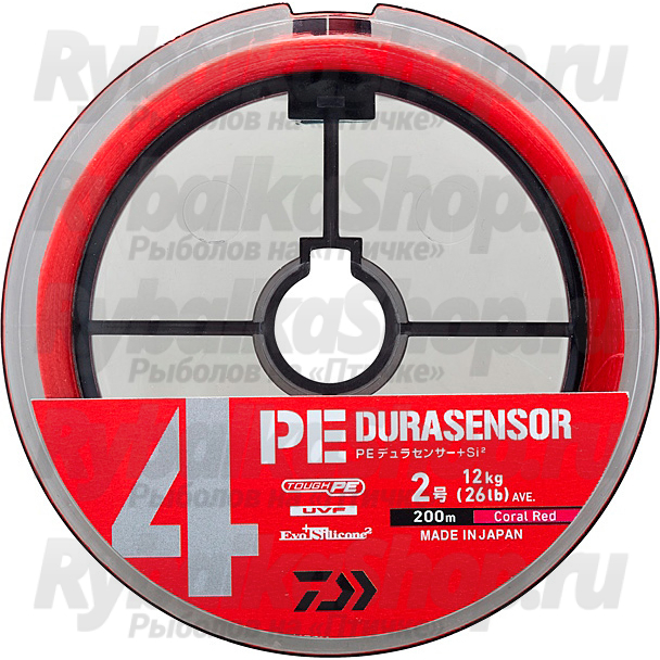 Daiwa UVF PE Dura Sensor 4Braid +Si² [Coral Red] 300m - высококачественный 4-х жильный плетеный шнур молочно-красного цвета. Изготовлен из волокна Tough PE с применением технология плетения UVF (Ultra Volume Fifer). Уменьшен диаметр, увеличена прочность, сильно снижена растяжимость, что дало увеличенную чувствительность и обеспечили превосходную стойкость к истиранию, сохраняя при этом преимущества тонкой плетеной лески. Применение Si2 (EVO Silicon) значительно уменьшает трение, что приводит к увеличению дальности и точности заброса. Специалисты Daiwa утверждают, что шнур выдерживает 300% нагрузки на износ, по сравнению со шнурами предыдущих поколений.
