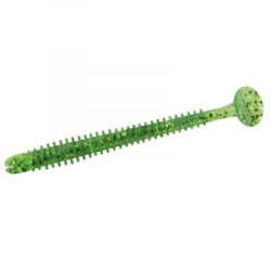 Ушко крючка выходит из снасти под углом 120 градусов, в отличие от обычных крючков (90 градусов), что делает подъёмы и опускания приманки более плавными, естественными.