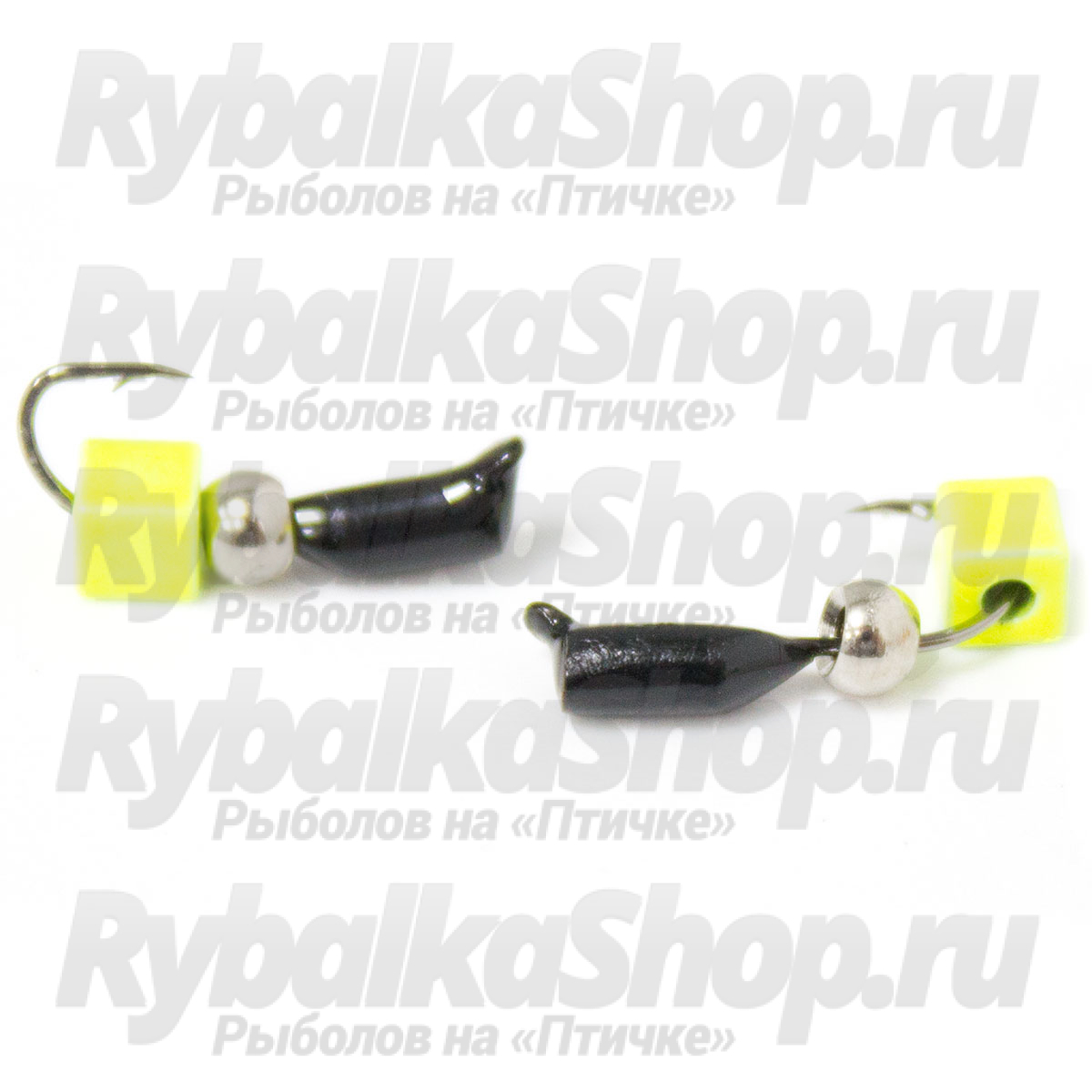 Мормышка Гвоздик №2 (бч)+ куб лимонка/шар серебро(0,55)