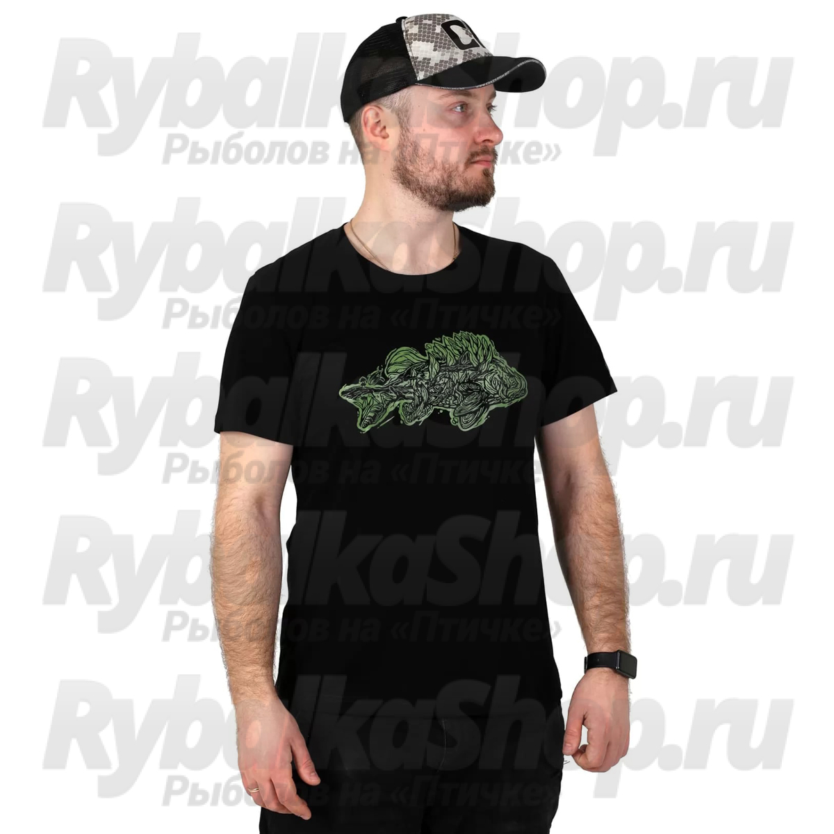 Состав и уход: хлопок 92%, лайкра 8%, плотность материала 160 грамм, а окунь и логотип нанесены шелкографией. Благодаря добавлению лайкры футболка тянется и лучше садится по фигуре, а стирать её просто: кидаете в стиральную машинку, ставите температуру не выше 30 градусов, потом гладите с обратной стороны принта и всё — вы неотразимо прекрасны.