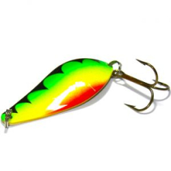 Trout Fan Ice Trout Diamond - универсальная колеблющаяся блесна с насечкой на лицевой стороне в виде чешуи, разработанная для ловли лососевых пород рыб. Классическая форма позволяет приманке прекрасно работать как на течении, так и в стоячей воде, а также и при ловле со льда форели. Оснащается острым прочным тройником. Насечки создают блики отраженного цвета и дополнительно привлекает хищную рыбу.