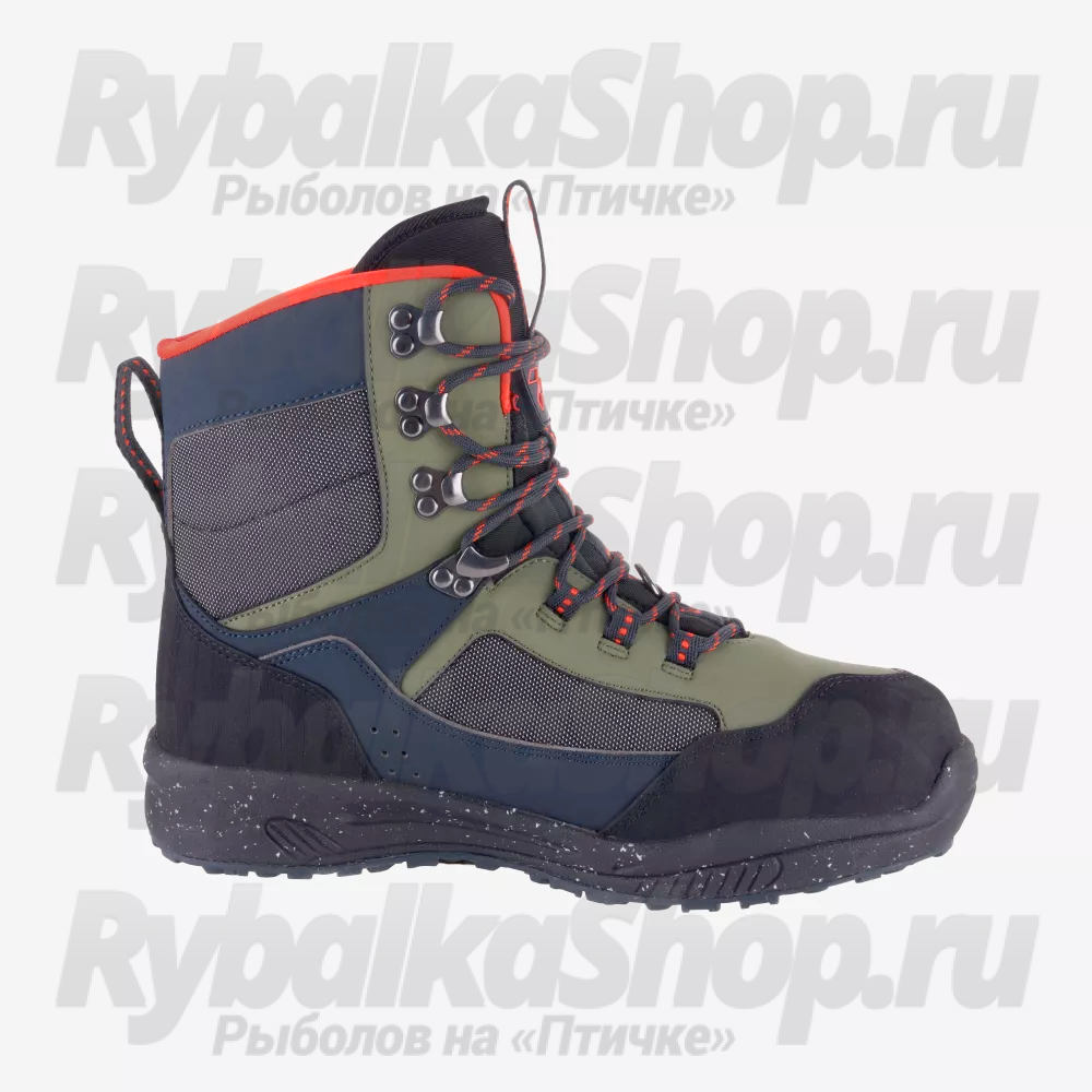 Модель выполнена из лёгкого, износостойкого материала с усилением в области носка и пятки, что обеспечивает дополнительную защиту от повреждений. Высокая конструкция ботинок хорошо фиксирует голеностоп, создавая устойчивость и комфорт при движении. Прочная резиновая подошва с надёжным протектором образует отличное сцепление с поверхностью. Благодаря увеличенной петле процесс надевания становится быстрым и удобным. Прочные нейлоновые шнурки надежно закрепляют и регулируют посадку ботинок. Обновлённая и более плотная стелька обеспечивает дополнительный комфорт при ношении. Также у модели появилось кольцо для крепления крючка вейдерсов, что делает ботинки еще более удобными и функциональными для использования на рыбалке или других активностях в воде. Специальные дренажные отверстия для слива воды помогают сохранить ноги в сухости и комфорте. Обратите внимание, что ботинки с дренажными отверстиями необходимо использовать только в комплекте с вейдерсами с неопреновым носком. Модель выполнена в цвете хаки и на каждую пару нанесён контрастный логотип.