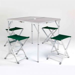 Комплект складной мебели для четырех персон, включающий складной стол и 4 стульчика. Оптимальный вариант для организации пикников, выездов на дачу, охоту или рыбалку - стулья размещаются внутри стола, который убирается в специальный чемодан.