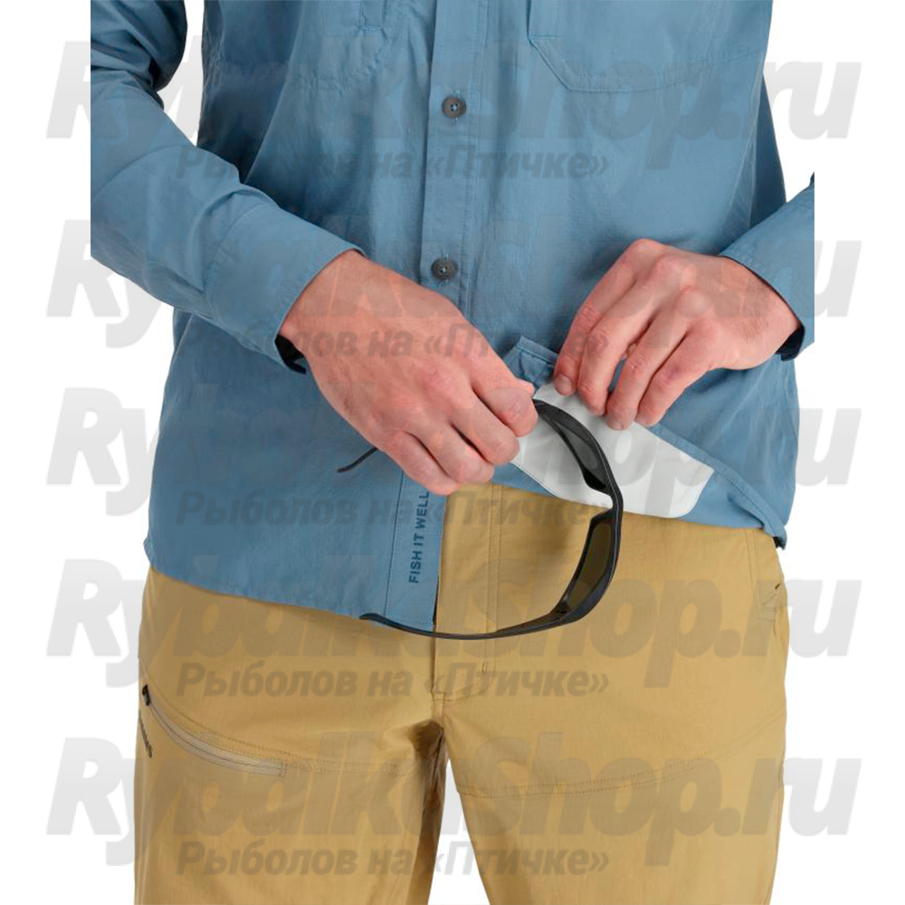 Рубашка Simms Guide Shirt с надежными карманами на молнии, легко закатываемыми рукавами и прочной быстросохнущей тканью, созданной для непревзойденного комфорта на рыбалке.