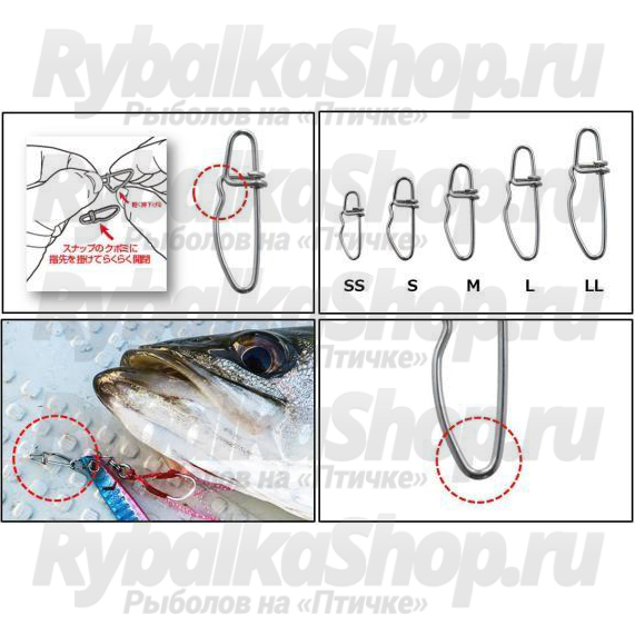 Daiwa SW-Snap – очень мощная и надежная застежка, рассчитанная на серьезные нагрузки. Фиксация скобы с внутренней стороны застежки прекрасно подходит для соединения с вертлюгом и уменьшает вероятность зацепов и перекручивания лески. Симметричная, хорошо сбалансированная форма не нарушает игру приманки.