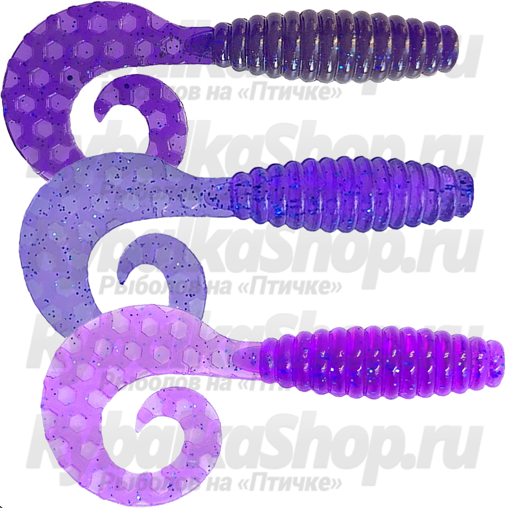 Силиконовая приманка МикроDжиг Curly Grab 2.0" 50мм цвет Фиолетовый Тёмный - Фиолетовый Прозрачный - Пурпурный