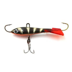 У балансира Яман "Плотва" в голове и хвостовой части есть одинарные крючки жалом вверх. Снизу и сверху тела расположены две петли: верхняя для крепления лески, нижняя для тройника. Благодаря форме хвоста-стабилизатора, приманка продемонстрировала уловистость и пришлась по вкусу и рыбакам и хищнику.