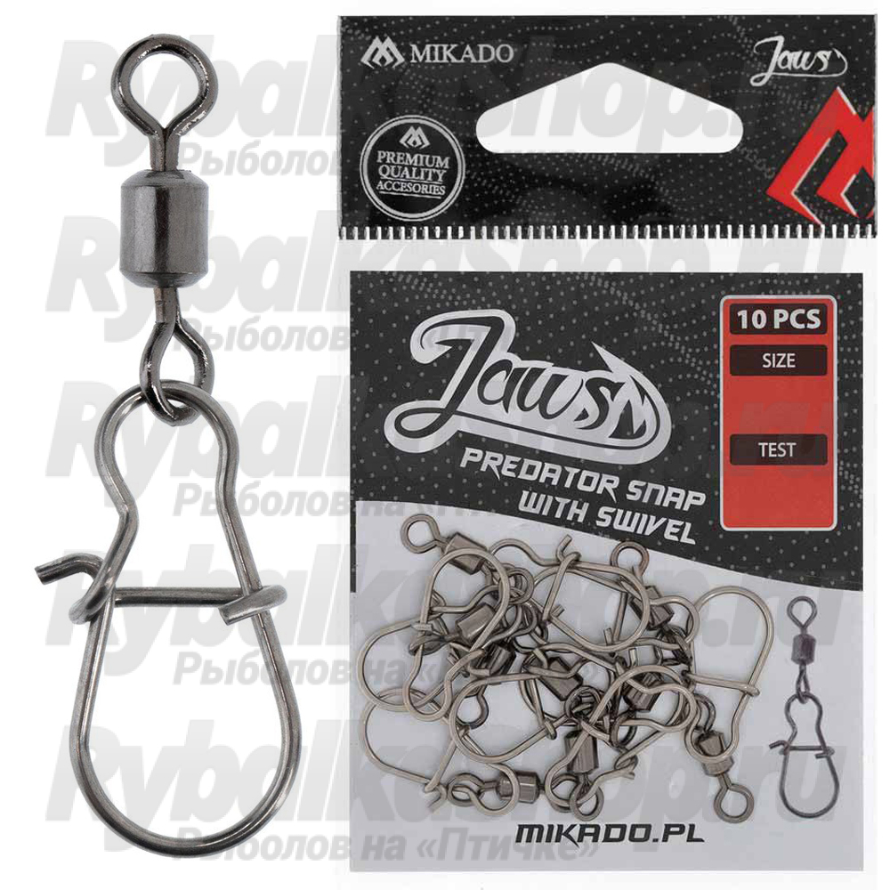 Вертлюг с застёжкой Mikado Jaws With Swivel Predator Snap № XL (р.н. до 20кг/10шт) (AMA02 -093-XL)