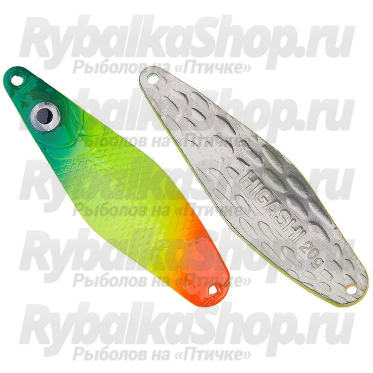 Прототипом блесны HIGASHI SIERRA является классическая английская колебалка начала 20 века, которая известна в России еще с дореволюционных времен, и которая после ряда доработок уже в советское время получила собственное названия «Прохоровка». За счет узкой и вытянутой формы данная блесна отлично держит струю - хорошо работает даже на сильном течении, быстро заводится и позволяет уверенно контролировать горизонт проводки.Блесна Sierra сохранила все отличные особенности игры блесен Прохоровка, но по дизайну значительно отличается от них. Внутренняя сторона блесны имеет «глубокую» рельефную поверхность. Благодаря этому, за счет переотражения света во время проводки, создается эффект движения живой рыбки. Как дополнительный раздражитель - точка атаки, в тело блесны с внешней стороны интегрирован 3D глаз. Для увеличения количества результативных атак хищника покраска блесны выполнена с UV эффектом. Блесна выполнена из цветного металла. SIERRA предназначена для ловли лососевых, а также щуки и судака.