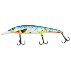 Воблер Ryobi Thunder Fox 38F - кренк для ловли крупного голавля. В нем сосредоточено все, чтобы обеспечить интерес лобастого. В первую очередь это округлая форма тела и полувертикально расположенная лопасть. Такой воблер не ныряет глубоко, но он провоцирует хищника в приповерхностных слоях, особенно возле нависших над водой ветвей деревьев и кустов. Как раз там, где голавль чаще всего и ищет свое пропитание. Каплевидное, почти шарообразное тело Thunder Fox длиной 38 мм массой 3,8 гр. дает рыболову возможность забрасывать его на расстояния, недоступные шедам и минноу, такой же массы. И это серьезно повышает шансы на успех голавлевой рыбалки. Так же Thunder Fox прекрасно подходит для ловли форели в быстрых и порожистых реках. Небольшое, до полуметра заглубление, снижает вероятность зацепления за дно и коряги, и крэнк проходит там, где застрянет и иная блесна. Для гарантии успешного улова можно выбрать подходящую «по месту» расцветку.