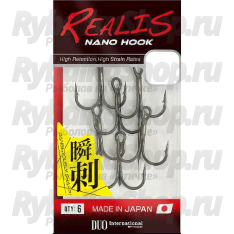 Установка правильных фирменных крючков на каждую приманку японского бренда DUO становится все более и более возможной с расширением ассортимента оригинальных крючков Duo. Еще одна серия Realis Nano Hook идеально подходит для оснастки многих воблеров Realis, чтобы игра и баланс оставались неизменными. Бескомпромиссное фирменное мастерство делает тройники чрезвычайно прочными и устойчивыми к деформации, а острые кончики с насечками слегка выгнуты наружу для максимального удобства подвешивания.
