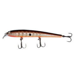 У блесны широкая передняя часть, и в отличие от приманок с классической формой, она почти не поднимается на поверхность при проводке против течения.