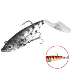 Блесна оснащена двумя прочными заводными кольцами из нержавеющей стали. Остро заточенный одинарный крючок с бородкой легко проникает в пасть рыбы при подсечке и надёжно удерживает её.