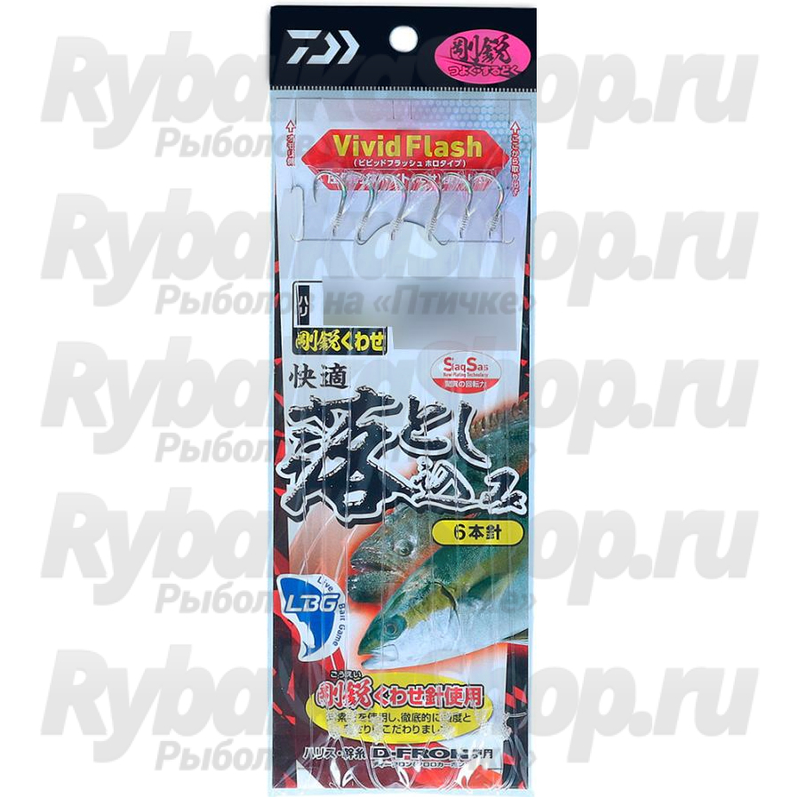 Сабики Daiwa K Otosikomi SS GEI6H разработаны для морской ловли, но может с тем же успехом использоваться и в пресной воде. Высокопрочная сталь обеспечивают прочность, мгновенное и надежное проникновение в пасть рыбы. Блестящие волокна придают этому крючку дополнительную привлекательность для морского хищника.