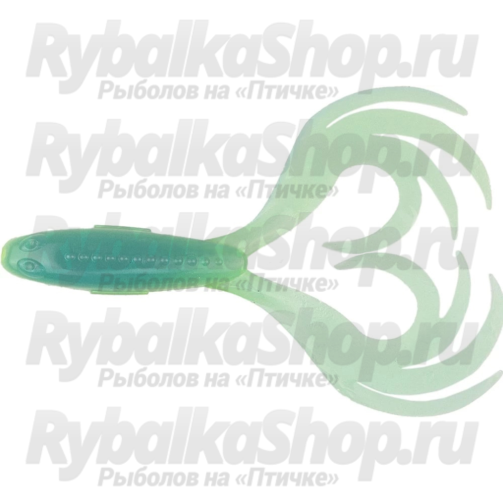 Передняя часть — округлой в сечении формы, объемная. Стойкая к многочисленным поклевкам наших «зубастых» хищников. Надежно держится как на джиг-головке, так и на системах-стингерах и крупных офсетных крючках со спиральными фиксаторами.