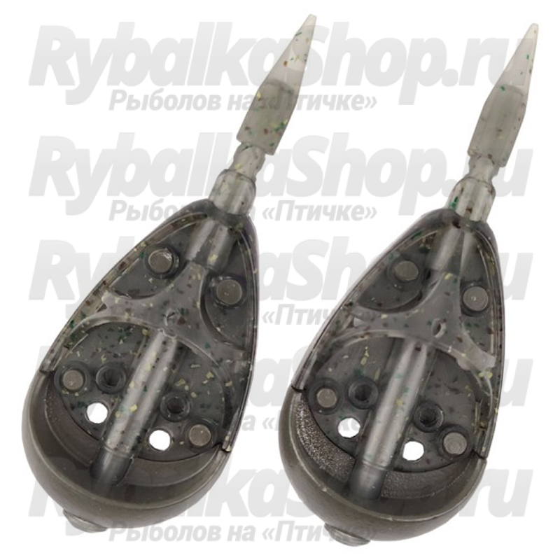 - In-Line конструкция. Леска проходит сквозь кормушку. Благодаря этому повышается чувствительность снасти. Также In-line безопасен для рыбы. При обрыве кормушка слетает с лески.
