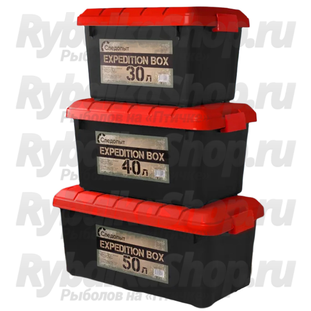 Набор ящиков особопрочных Следопыт Expedition Box, 30 л, 40 л, 50 л, цв. черный/красный