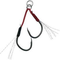 Серия двойных ассист хуков Higashi Double Assist Hook HC для оснащения троллинговых приманок (силиконовых  октопусов, каракатиц и др.). Длины поводков 2,5 и 1,2см соответственно, разрывная нагрузка 80Lb. Оснащены вертлюгом из нержавеющей стали для предотвращения скручивания лески. Использованы легкие, тонкие лососевые крючки  от Higashi, цвет может меняться в зависимости от модели.