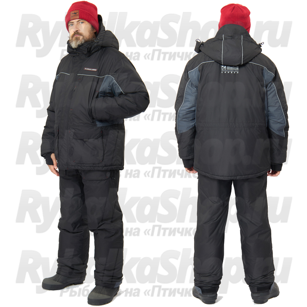 Alaskan Larsen – раздельный зимний костюм для активной рыбалки. Небольшой вес и анатомический крой позволяет легко и быстро двигаться во время рыбалки, не сковывая движений.