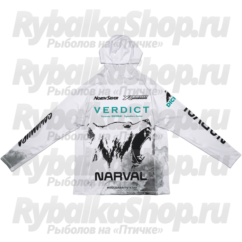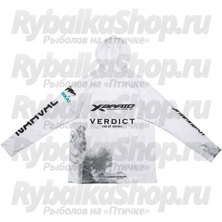 Лонгслив с капюшоном Volga Baits Dichka! PAL25 #White/Black&Azure р.46