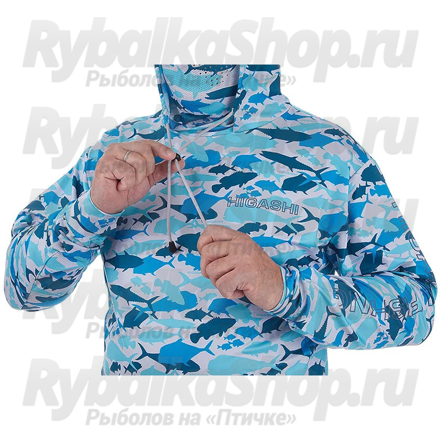 Летняя легкая рубашка (джерси) HIGASHI OCEAN с длинными рукавами, капюшоном и дополнительной защитой лица. Изготовлена из быстросохнущего, дышащего материала с защитой от ультрафиолетовых лучей UPF 50+.