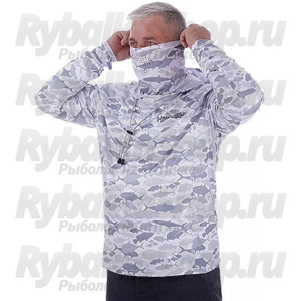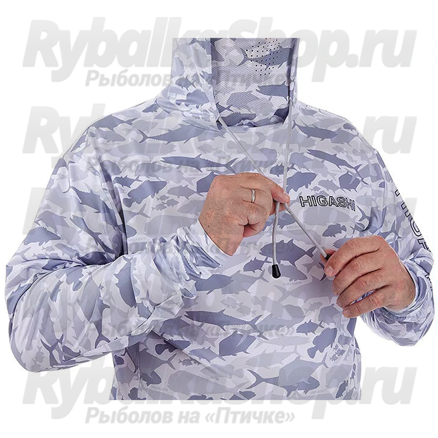 Летняя легкая рубашка (джерси) HIGASHI OCEAN с длинными рукавами, капюшоном и дополнительной защитой лица.  Изготовлена из быстросохнущего, дышащего материала с защитой от ультрафиолетовых лучей UPF 50+.