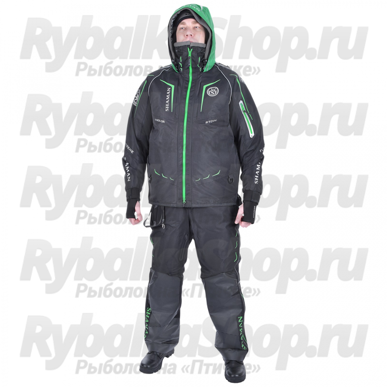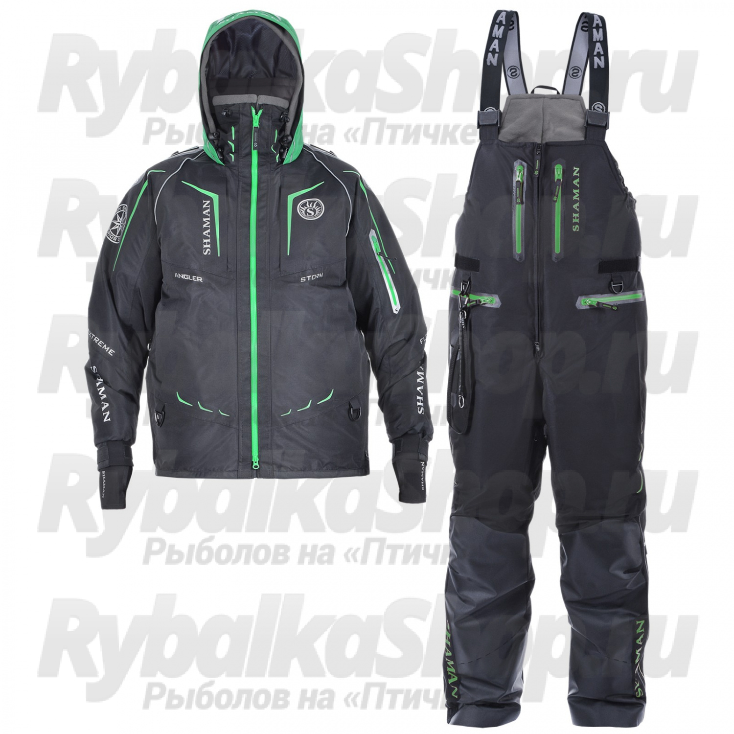 Костюм-поплавок мужской зимний ХСН "Angler prosport", hardguard, черный (зеленые молнии) (48-50/176)