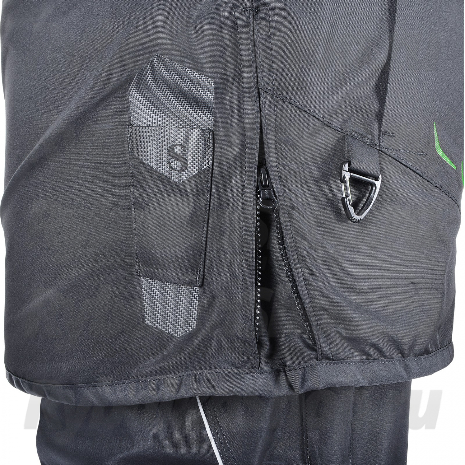 Влагозащитные молнии проклеены термоустойчивой пленкой Protectfilm австрийского производства, что делает карманы костюма влагозащитными.
