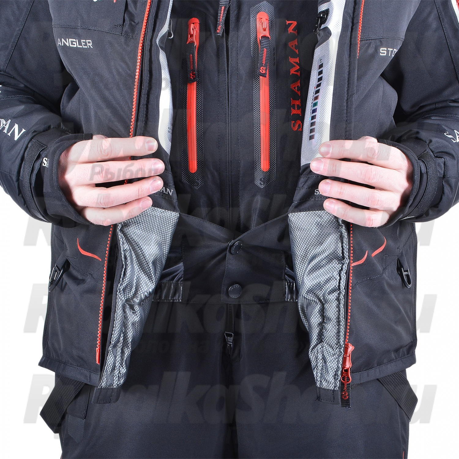 Высокий, теплый «штормовой» воротник куртки из флиса защищает от ветра. Удобный глубокий капюшон с системой регулировки. Глубокие утепленные карманы на куртке специально созданы для размещения всего необходимого для рыбалки и согрева рук.