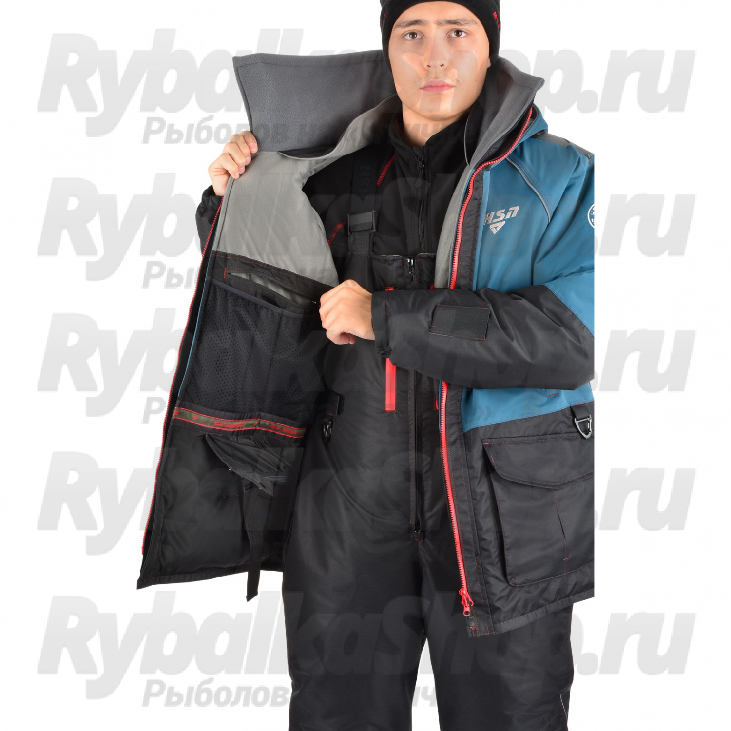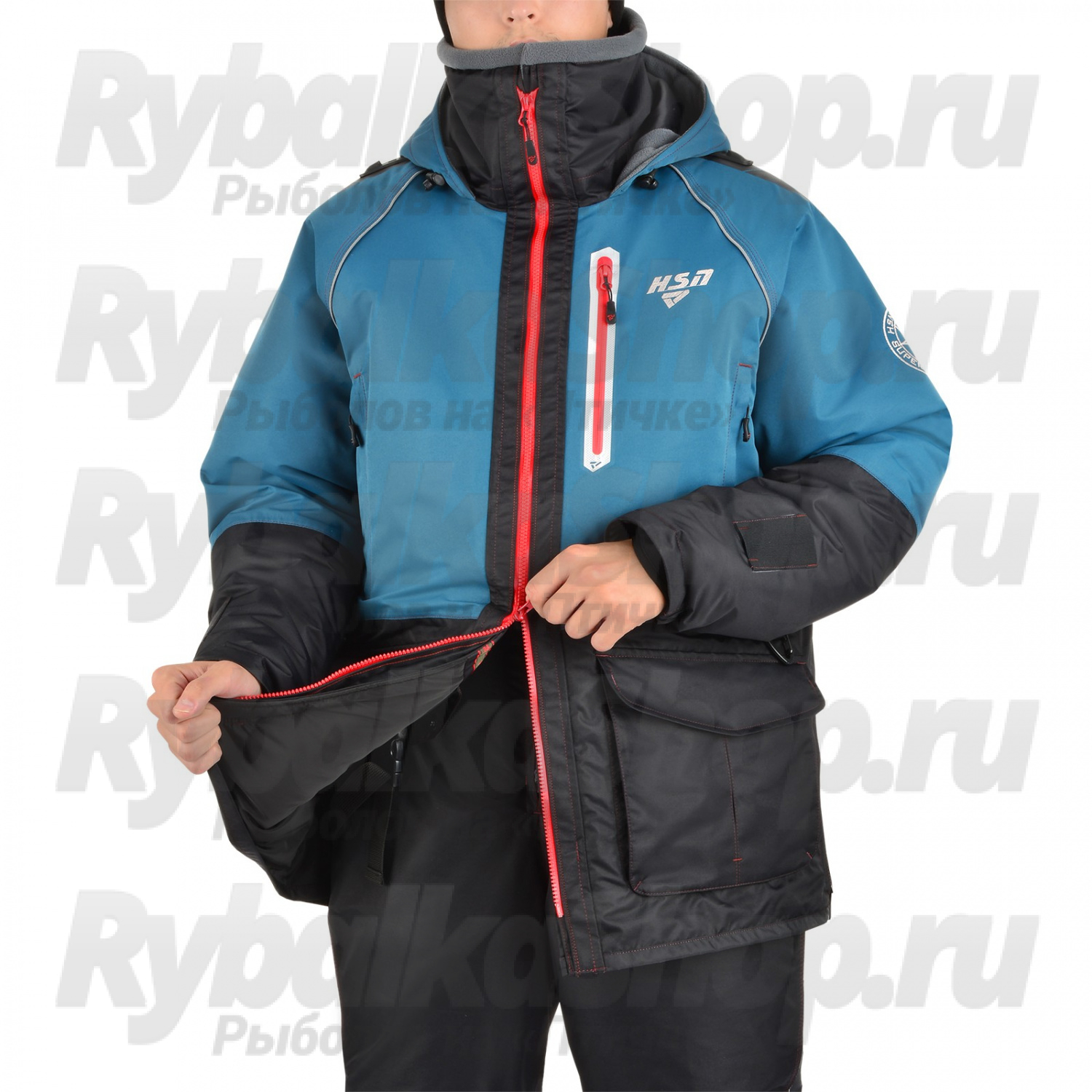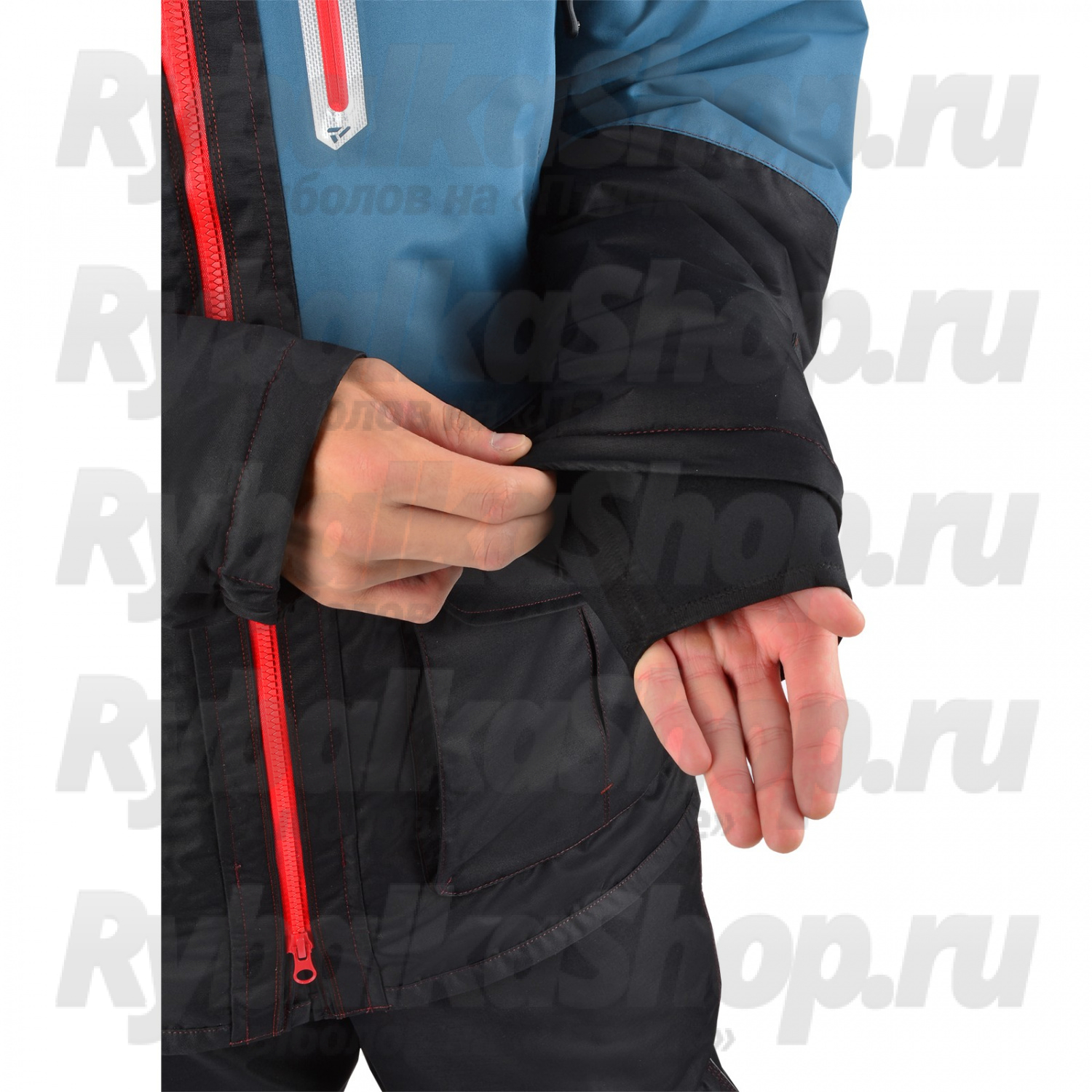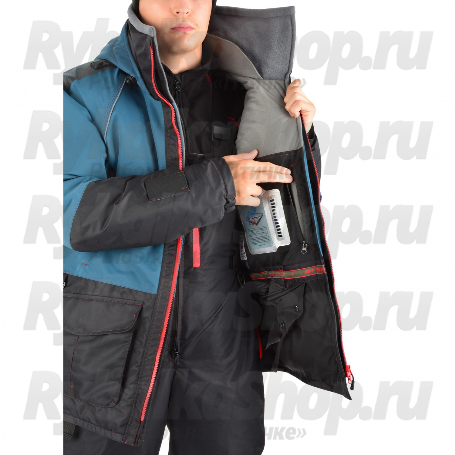 Высокий воротник и удобный капюшон с жестким козырьком надежно защищают от ветра и влаги, а глубокие утепленные карманы предназначены для хранения необходимого инвентаря и согрева рук. Специальные крепления на рукавах позволяют быстро использовать спасалки в случае падения в воду.