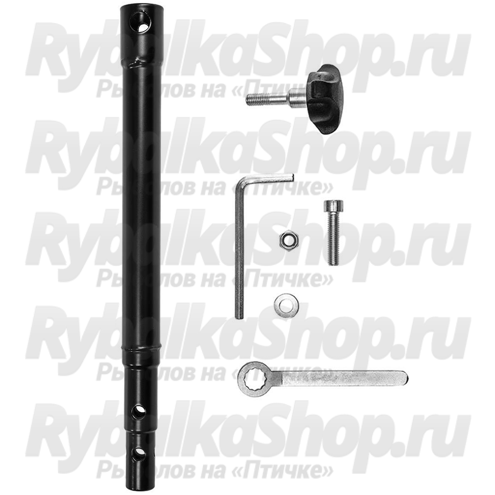 В комплект с удлинителем входят: винт-барашек М8, гайка М8, шайба D8, винт М8x35, ключ накидной S13, ключ шестигранный S6.