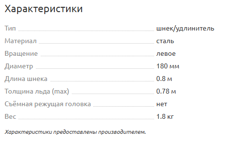 - Шнек ледобура в сборе — 1 шт;