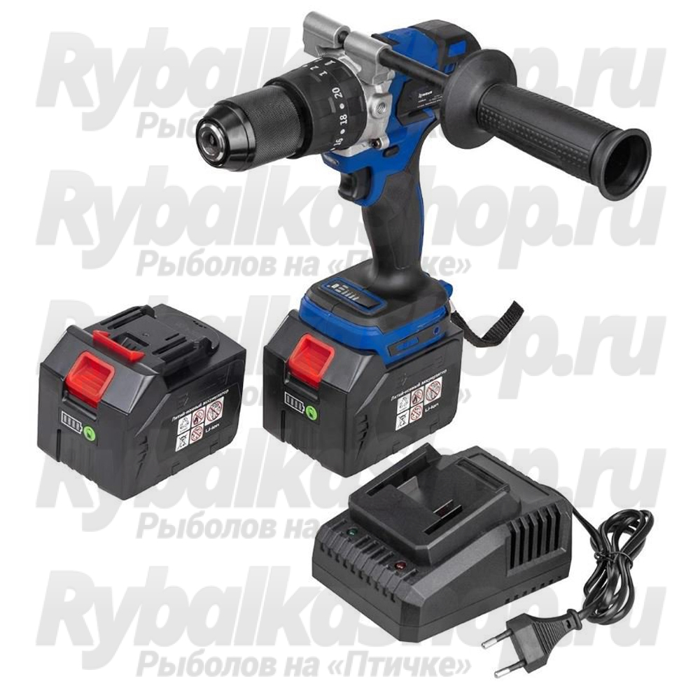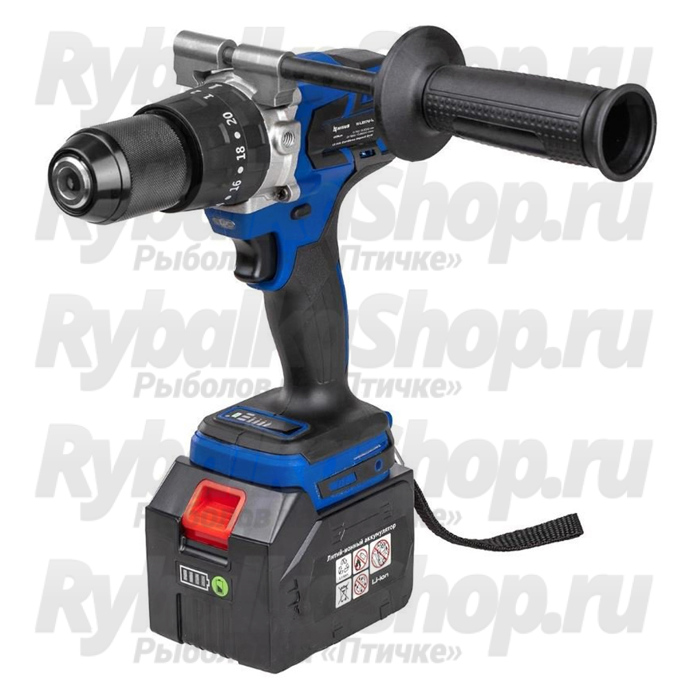 Три режима работы: ударное сверление, сверление, завинчивание. Благодаря своим характеристикам шуруповерт подходит для использования в комплекте с ледобуром, для бурения льда. В комплекте идут 2 сменные Li-Ion аккумуляторные батареи 6Ah.