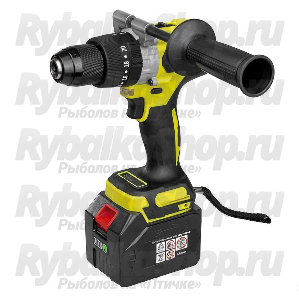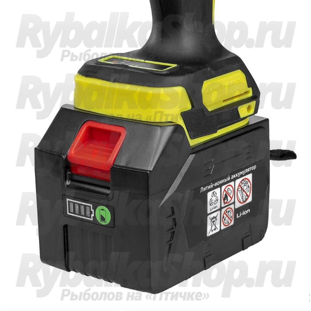 Три режима работы: ударное сверление, сверление, завинчивание. Благодаря своим характеристикам шуруповерт подходит для использования в комплекте с ледобуром, для бурения льда. В комплекте идут 2 сменные Li-Ion аккумуляторные батареи 6Ah.