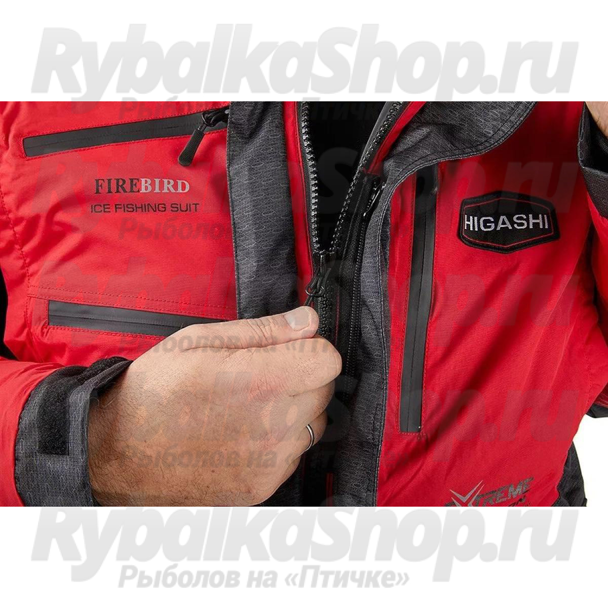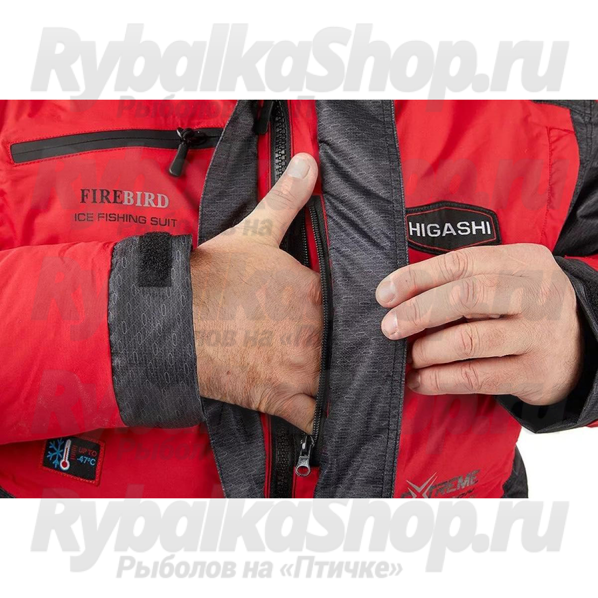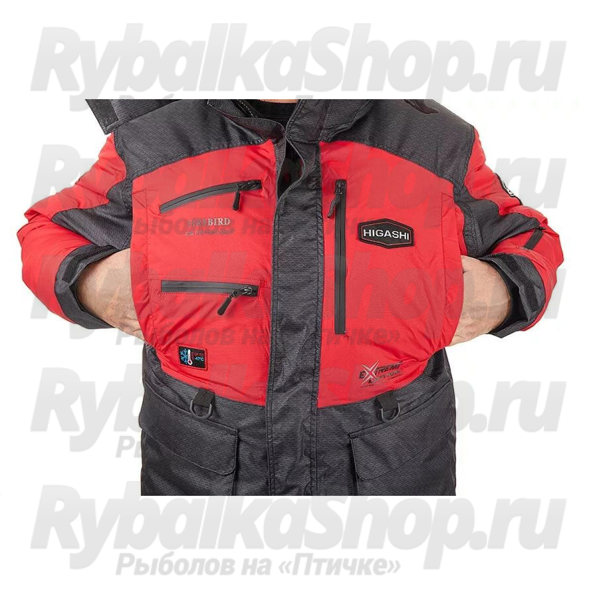 Функциональный костюм для зимней рыбалки Higashi Fire Bird. Костюм можно использовать при экстремально низких температурах до -47С. Защиту от неблагоприятных внешних воздействий – сильный ветер, мокрый снег/дождь обеспечит внешняя мембранная ткань FACE your SECOND SKIN с водонепроницаемость 12000 мм в.ст., паропроницаемость 9000 гр/м.кв.