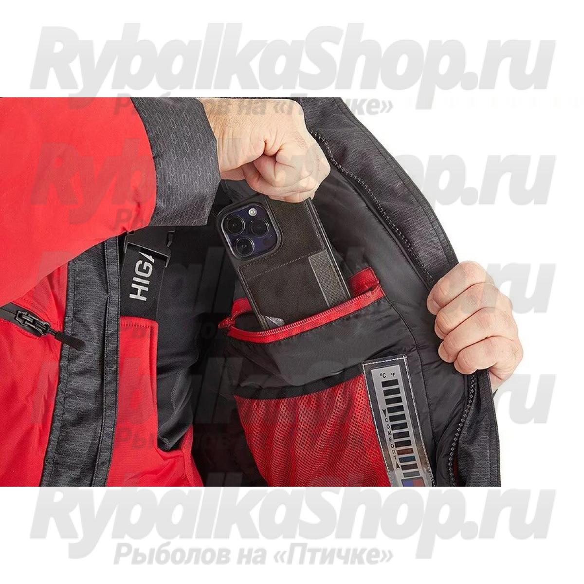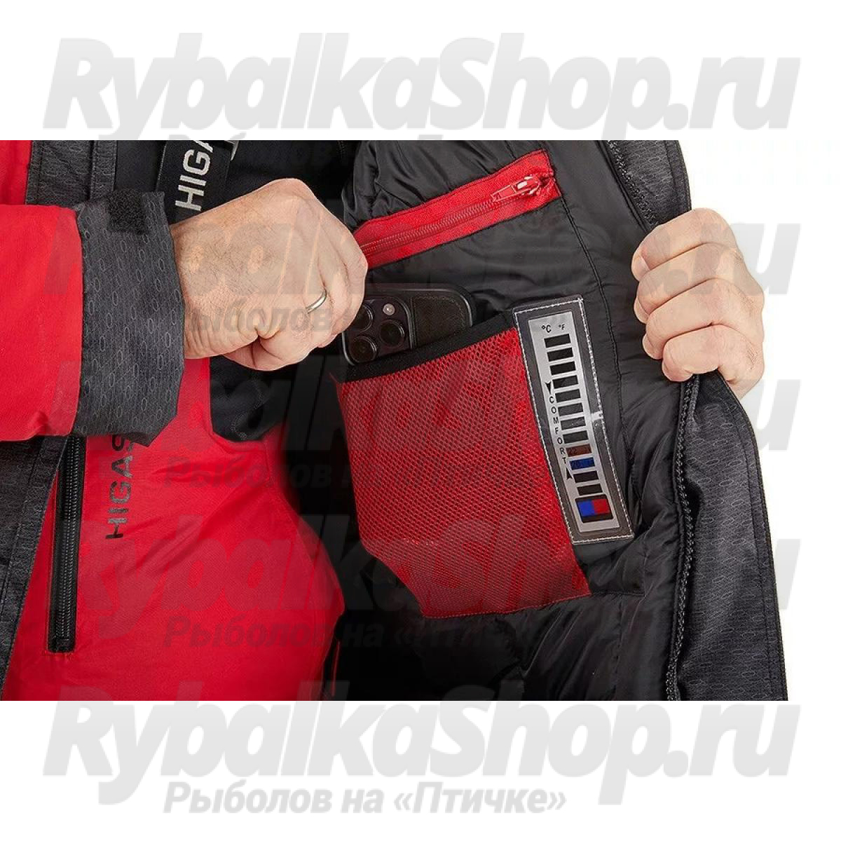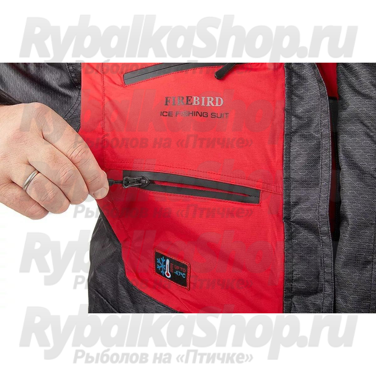 Функциональный костюм для зимней рыбалки Higashi Fire Bird. Костюм можно использовать при экстремально низких температурах до -47С. Защиту от неблагоприятных внешних воздействий – сильный ветер, мокрый снег/дождь обеспечит внешняя мембранная ткань FACE your SECOND SKIN с водонепроницаемость 12000 мм в.ст., паропроницаемость 9000 гр/м.кв.