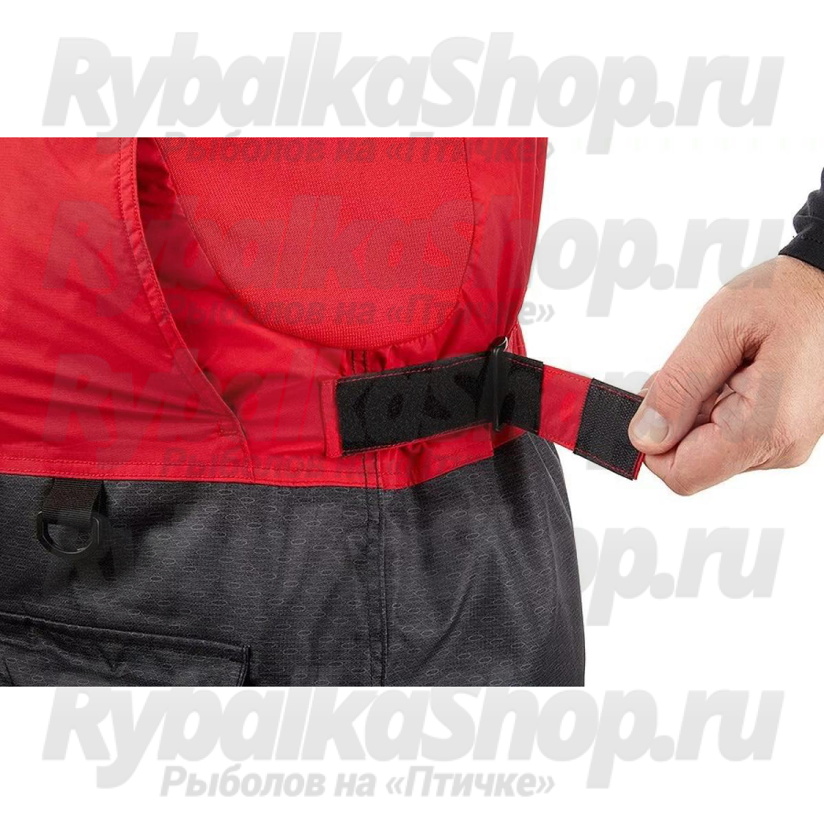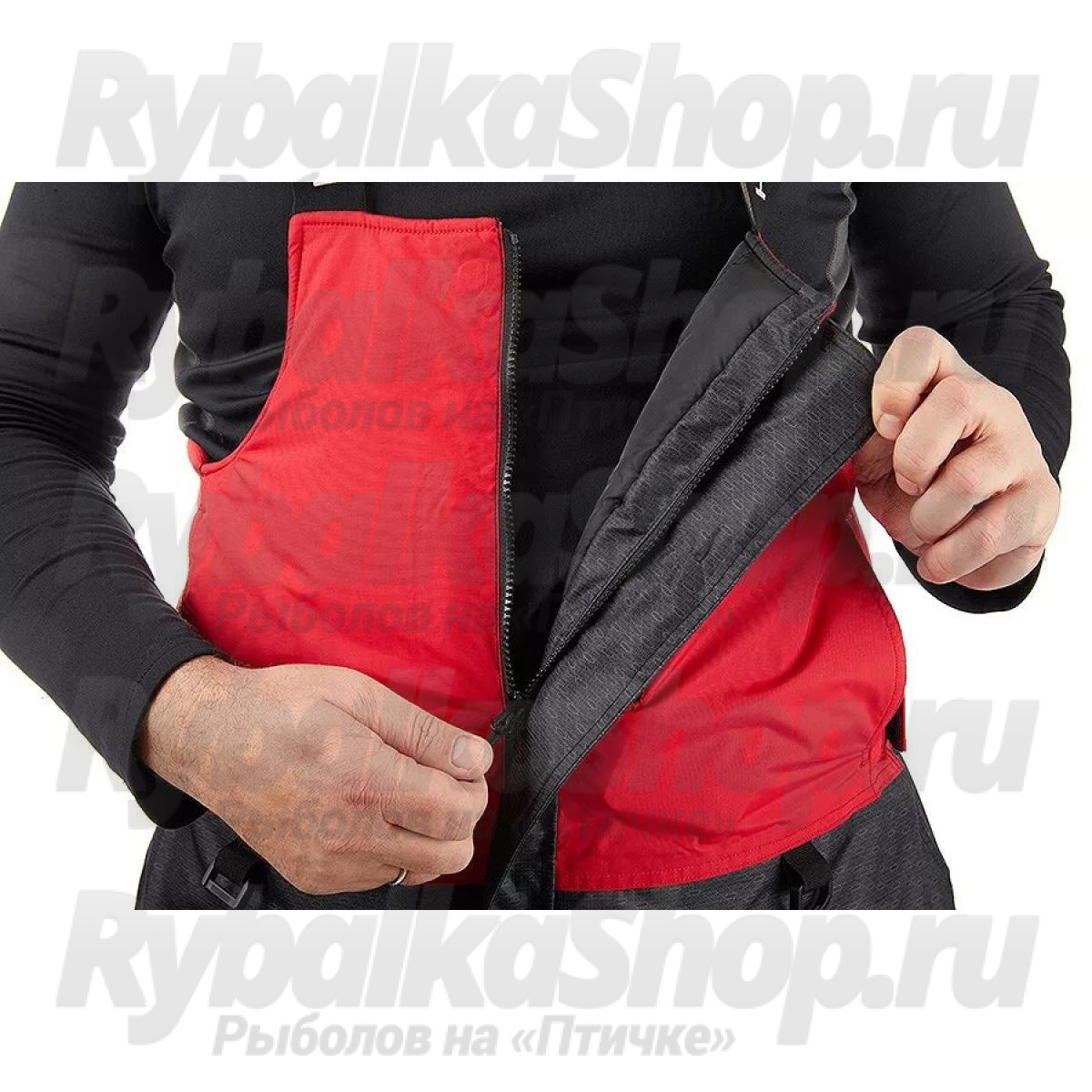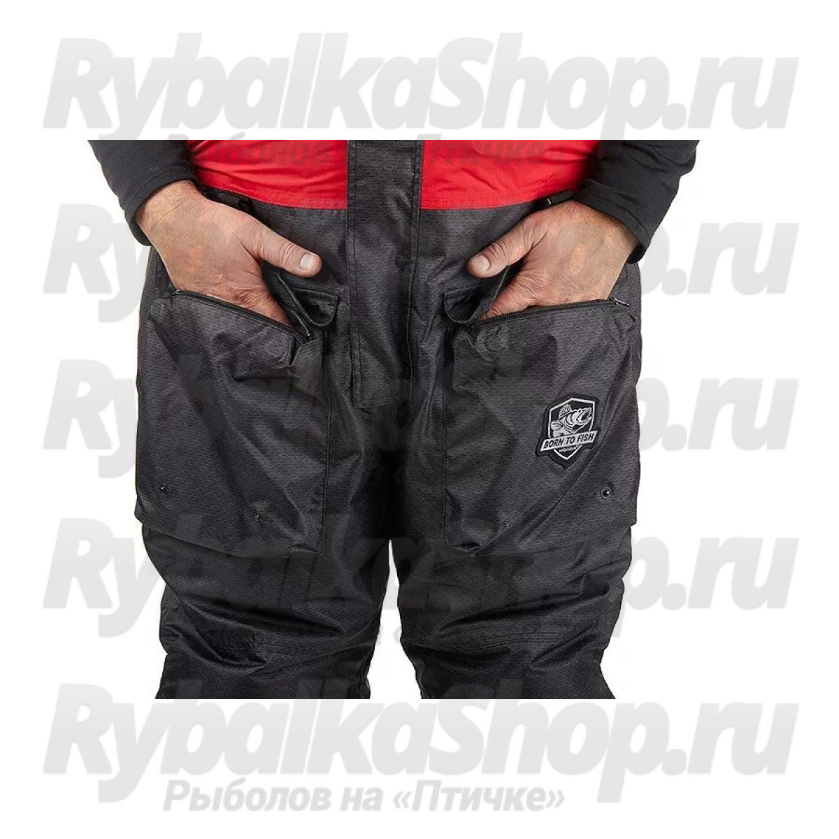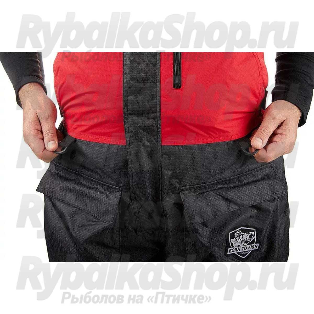 Костюм имеет большое количество карманов, куртка костюма оборудована снежной юбкой, есть регулировка длины брюк полукомбинезона. Чтобы быстро вытереть руки во время зимней рыбалки, в комплект костюма входят два небольших полотенца, которые можно закрепить на нижних карманах комбинезона.