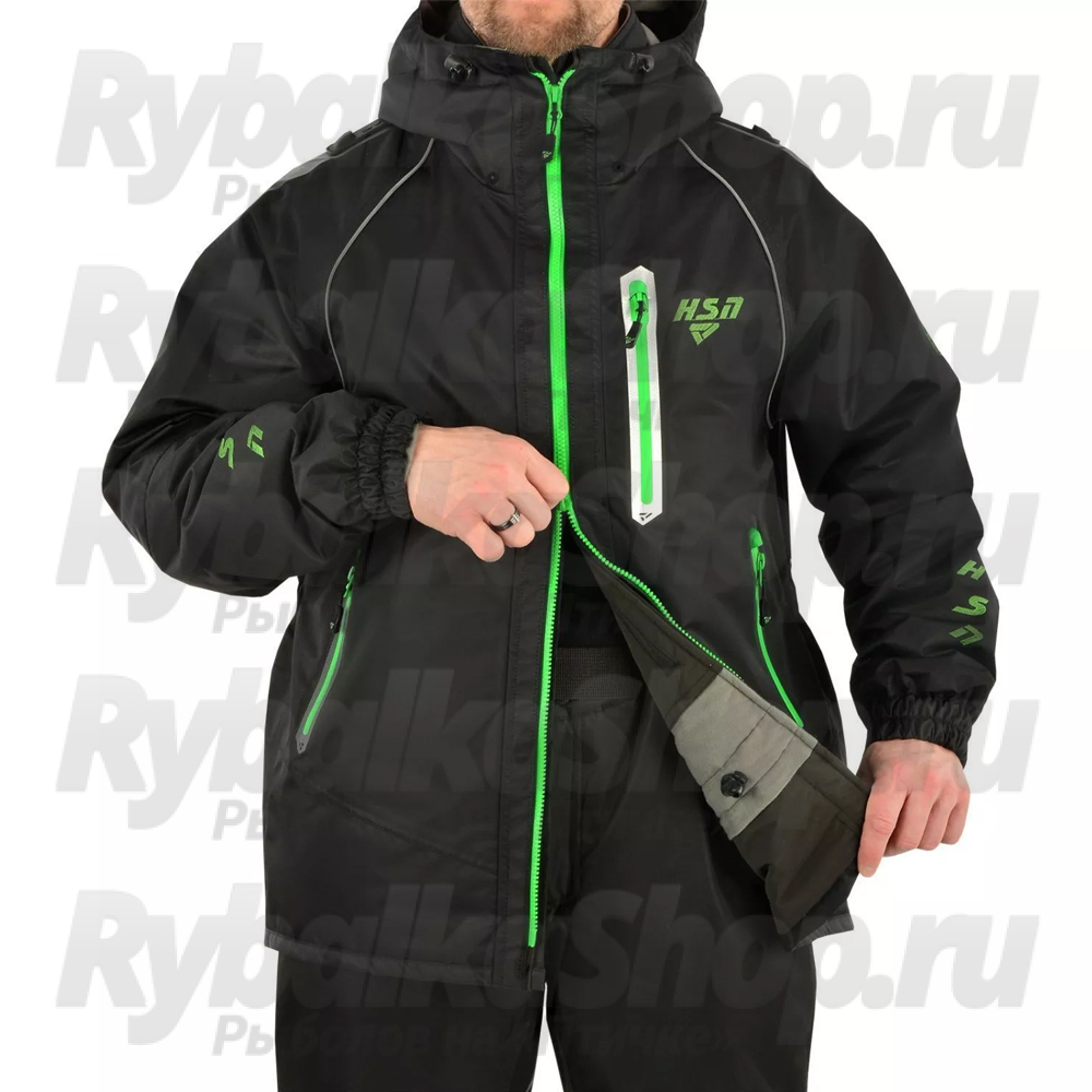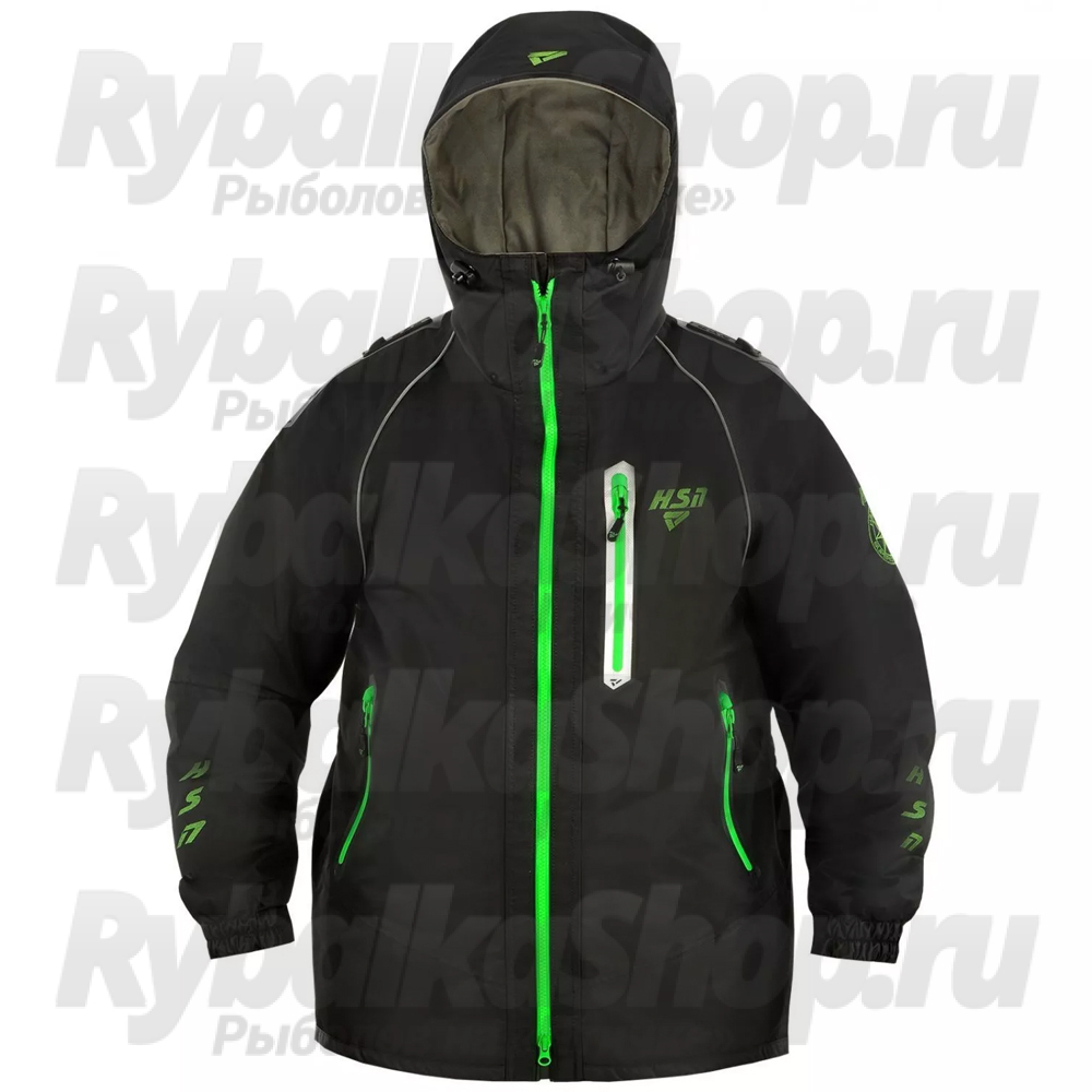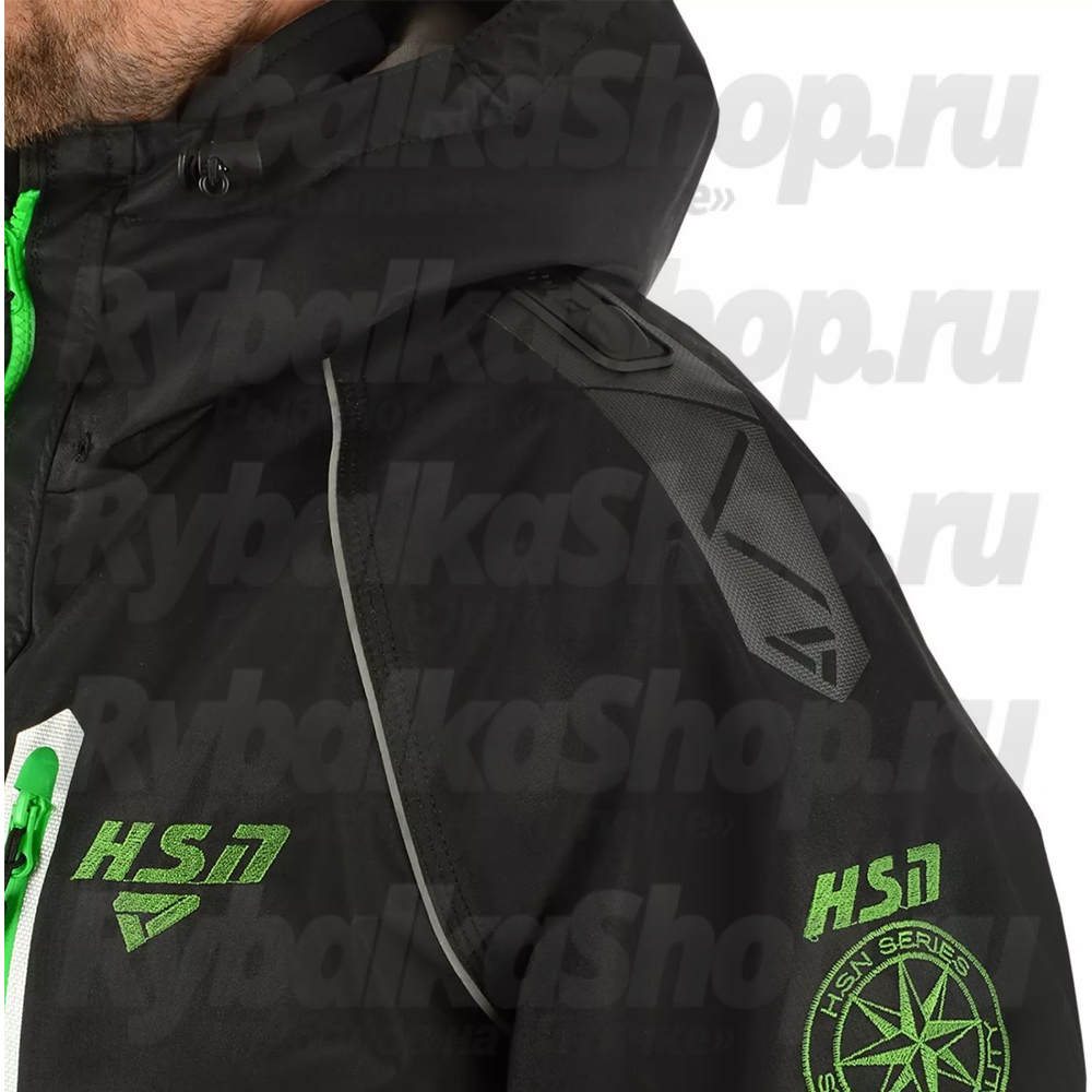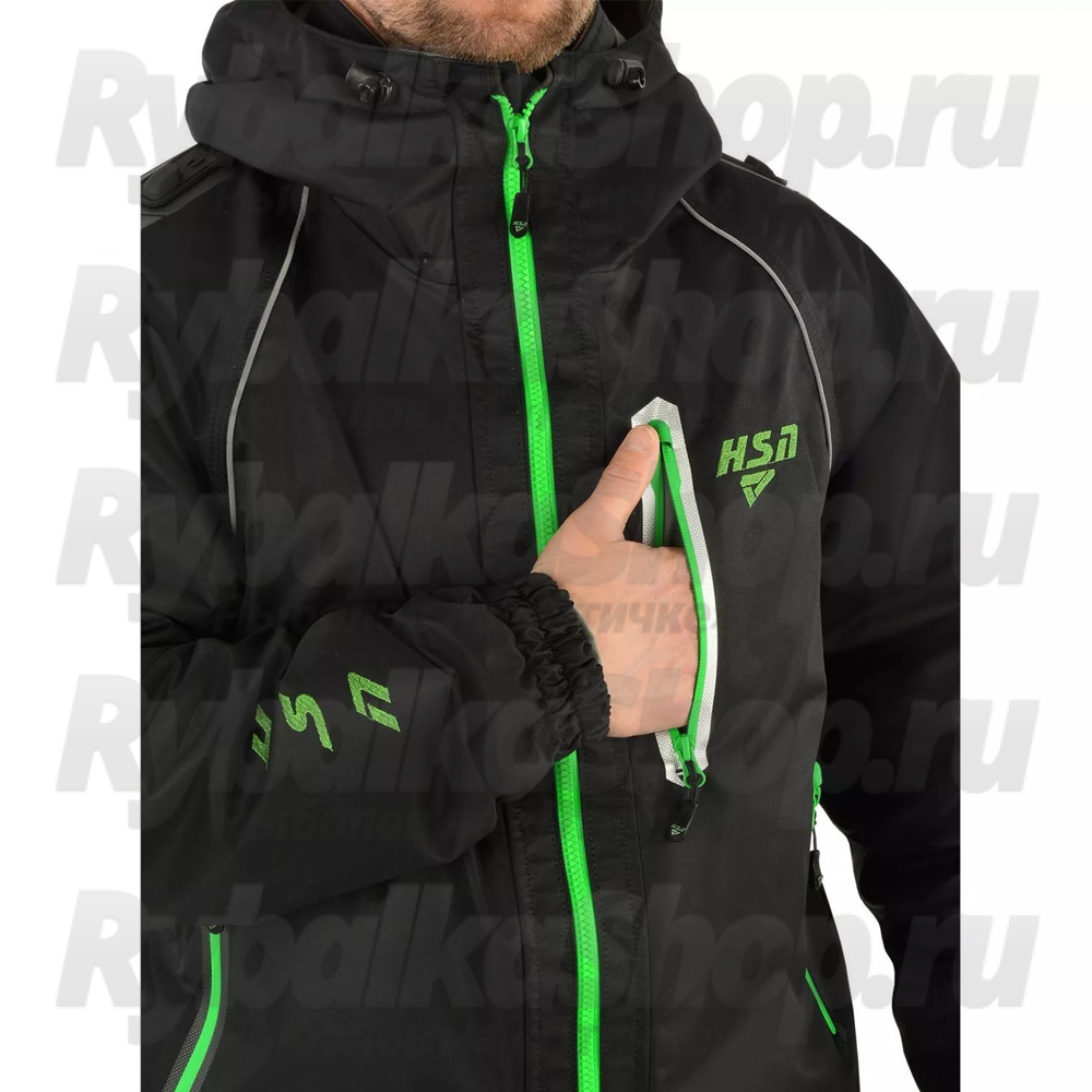 Костюм мужской демисезонный ХСН "Wild river" -10, hardguard, черный (зеленые молнии) (52-54/176)