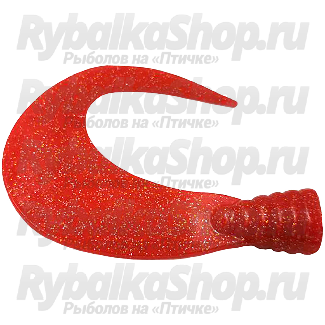 Хвост твистерный Strike Pro Big Sickle Tail Большой серп 12см (развернутый 16см) 20гр. цвет красный с блестками 2шт