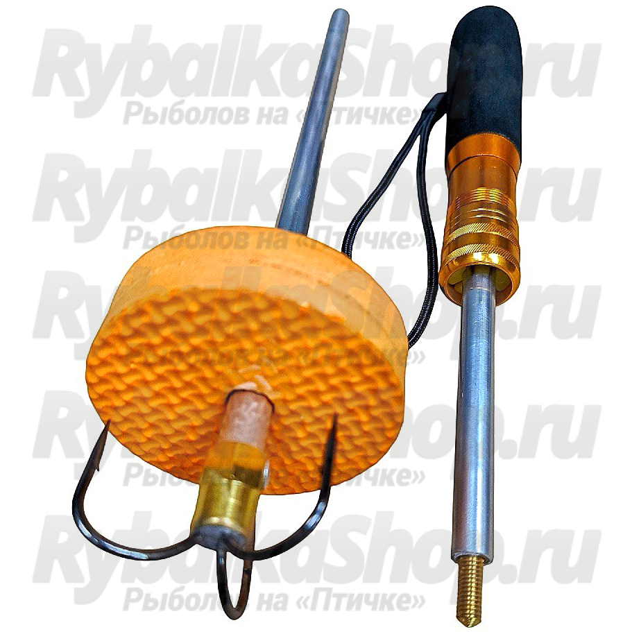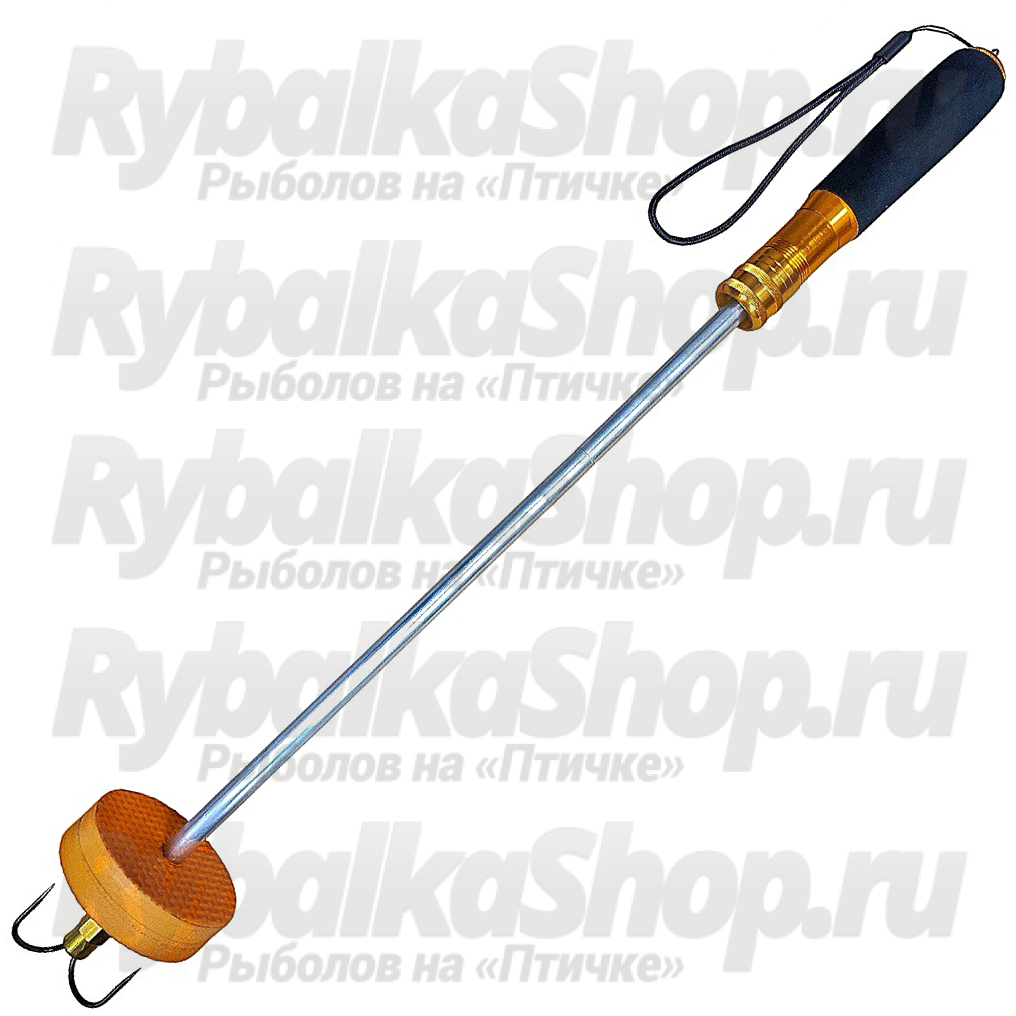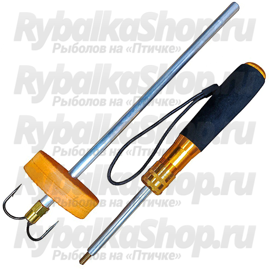Багорик имеет яркий цвет, выделяющий его на белом снегу, положительную плавучесть благодаря ручке и юбке из ЭВА, он никогда не утонет при случайном падении в лунку. Острый мощный тройник впаян в латунный оголовок, в отличие от многих производителей, где тройник сажается на термоклей. Впайка намного увеличивает его прочность и надежность.