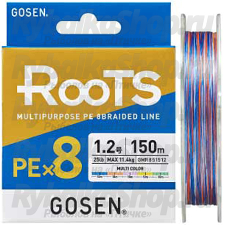 Шнур PE Gosen Roots PEx8 Multicolor 150m #0.8 16LB.