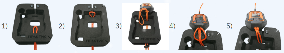Чтобы обеспечить максимальную сохранность устройства, рекомендуем укладывать прибор в чехол экраном вниз. IMG_2402_1.png На рыбалке блок эхолота может быть зафиксирован в футляре, располагаться зимой на льду возле лунки, а летом — на сиденьях лодки. Чтобы зафиксировать эхолот перпендикулярно, стоит воспользоваться оригинальным фирменным шнурком.