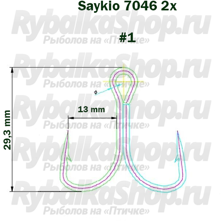 Крючки тройные Saikyo 7046 BN 2X № 1 (50шт)