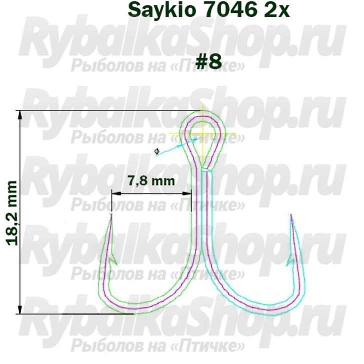 Крючки тройные Saikyo 7046 BN 2X № 8 (50шт)