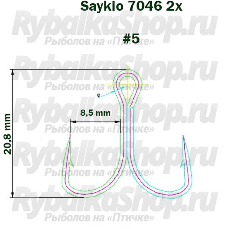 Крючки тройные Saikyo 7046 BN 2X № 5 (5шт)