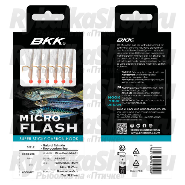 Высококачественный флюорокарбон, используемый в конструкции, обеспечивает незаметность оснастки в воде и надежность при вываживании рыбы. Сочетание профессионального исполнения, качественных материалов и продуманной конструкции делает сабики BKK Micro Flash-NFA-01 незаменимым инструментом для морской рыбалки. Эта снасть станет отличным выбором как для опытных морских рыболовов, так и для тех, кто только начинает осваивать вертикальную ловлю в морской среде.